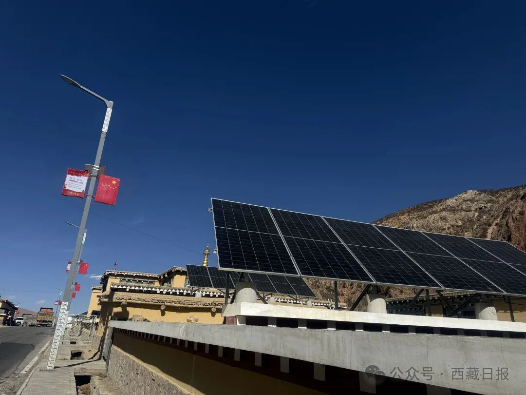 图为昌都市八宿县邦达镇邦达村清洁能源集中供暖设备太阳能板。记者 周婷婷